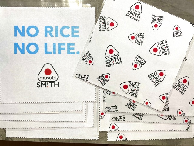 ごはん党さんにオススメ! おむすびすみすオリジナル(屋内用)ミニマグネット。 ■サイズ:50mm x 50mm NO RICE NO LIFE =ご飯ナシでは生きられない さりげなくおむすびすみすのロゴがデザインされています。